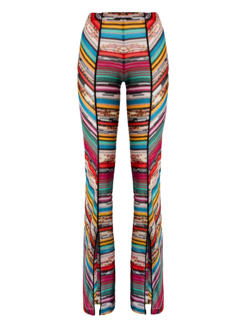 striped trousers Highlights - Pink - Multicolour striped pattern - Flared legs - Side splits - Black trim - The item you receive may differ slightly from the item photographed. this is due to the artisanal nature with which all missoni products are constructed. Made In Italy Composition Rayon 88%, Metallised Fibres 12% Washing instructions Read Manufacturer Guidelines