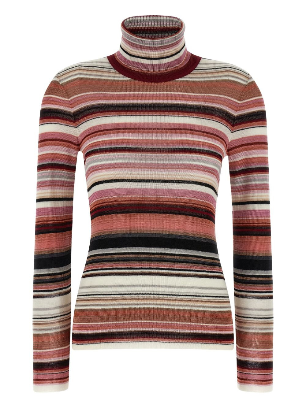 striped-turtleneck sweater Highlights - Pink - Striped pattern - Turtleneck - Long sleeves - Ribbed knit - The item you receive may differ slightly from the item photographed. this is due to the artisanal nature with which all missoni products are constructed. Imported Composition Viscose 59%, Wool 41% Washing instructions Read Manufacturer Guidelines