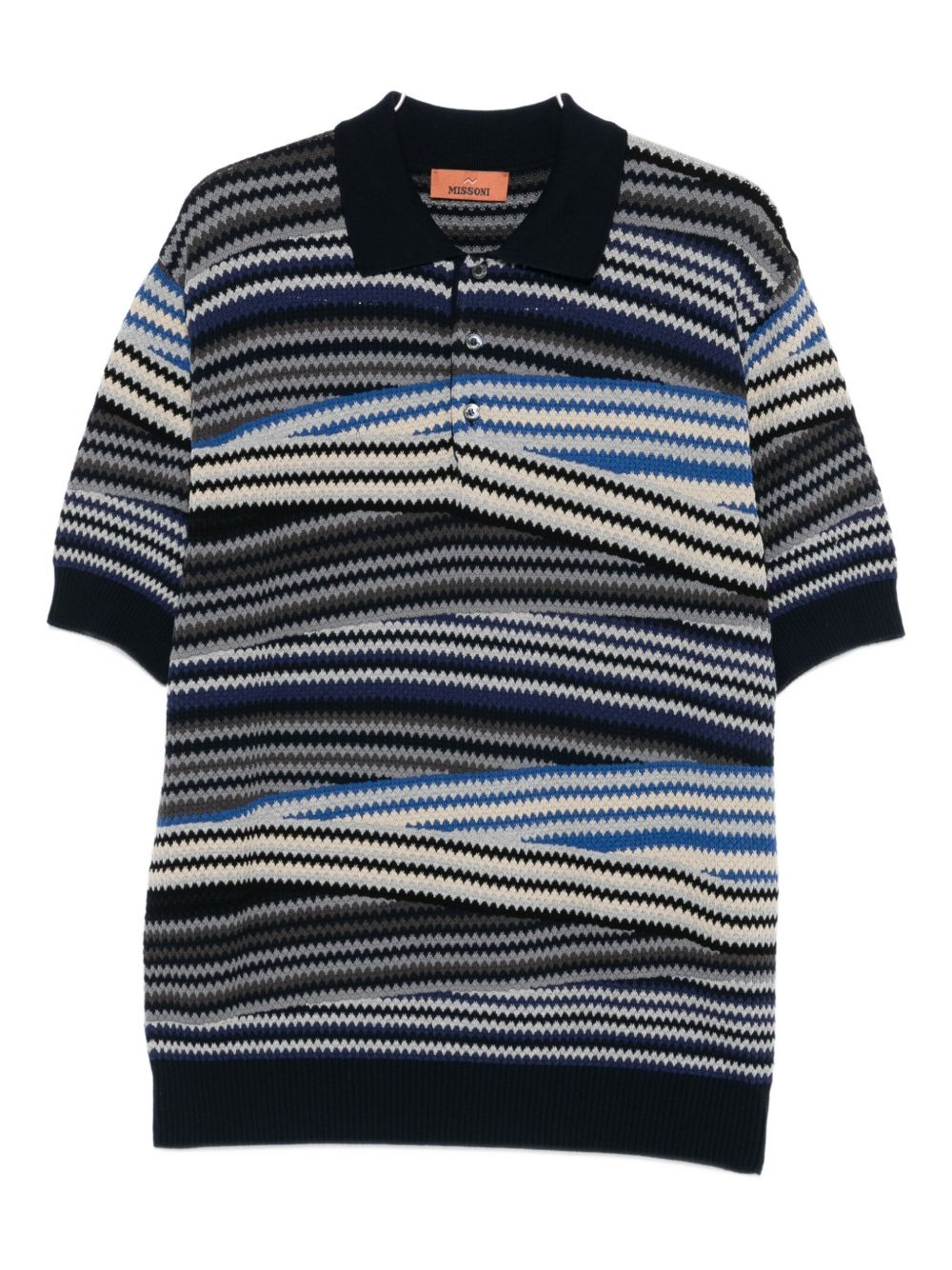 striped zig-zag polo shirt Highlights - Navy blue - Multicoloured stripes - Zig-zag pattern - Short sleeves - Polo collar - Button fastening - The item you receive may differ slightly from the item photographed. this is due to the artisanal nature with which all missoni products are constructed. Imported Composition Cotton 100% Washing instructions Read Manufacturer Guidelines