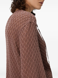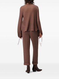 textured tie-neck top Highlights - Brown - Textured weave - Tie neck - Long sleeves - Balloon sleeves - Tie cuffs - The item you receive may differ slightly from the item photographed. this is due to the artisanal nature with which all missoni products are constructed. Made in Italy Composition Wool 54%, Rayon 46% Washing instructions Read Manufacturer Guidelines