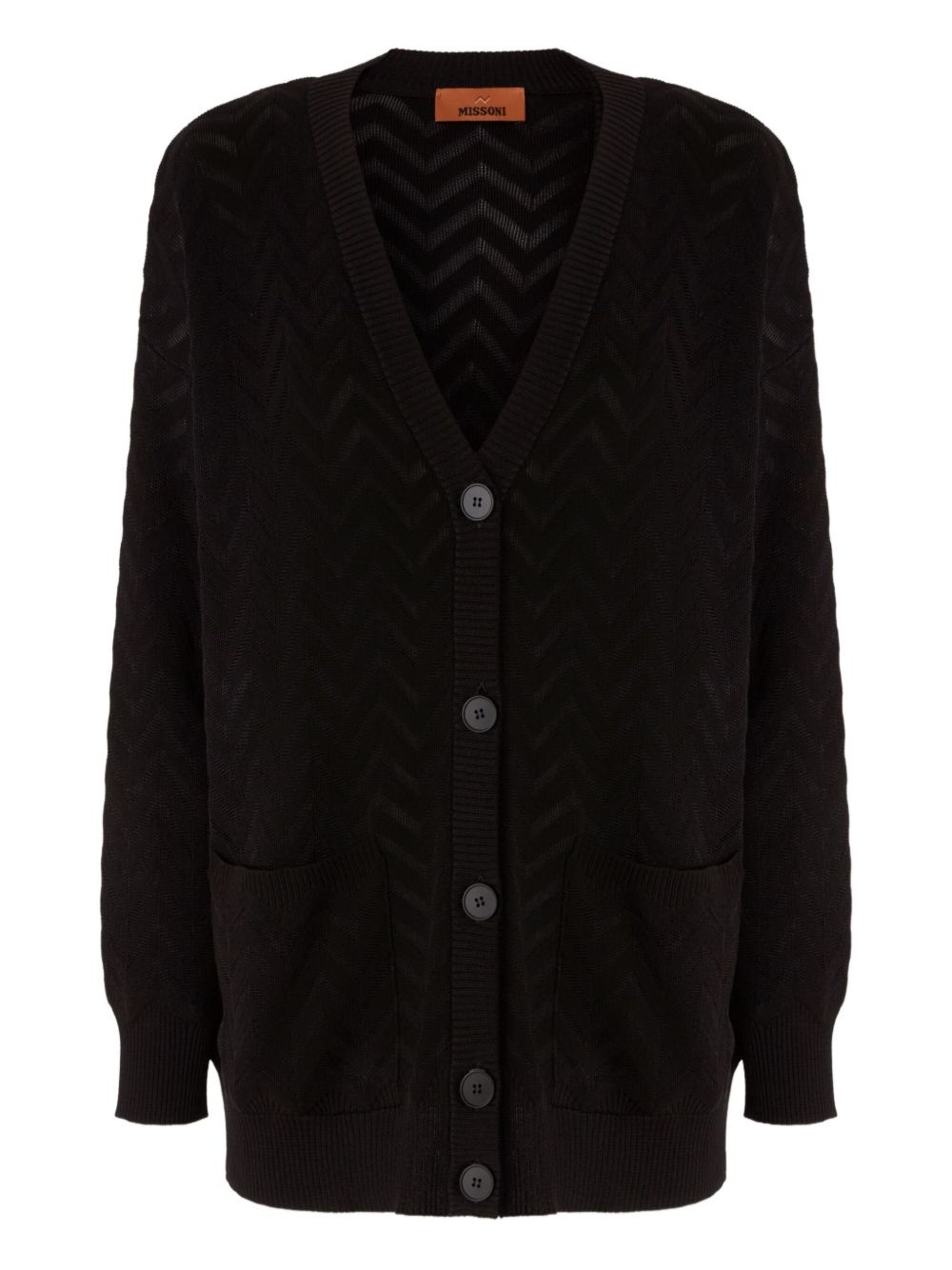 V-neck cardigan Highlights - Black - Front button fastening - Long sleeves - Side patch pockets - The item you receive may differ slightly from the item photographed. this is due to the artisanal nature with which all missoni products are constructed. Made in Italy Composition Cotton 61%, Rayon 37%, Spandex/Elastane 1%, Polyamide 1%