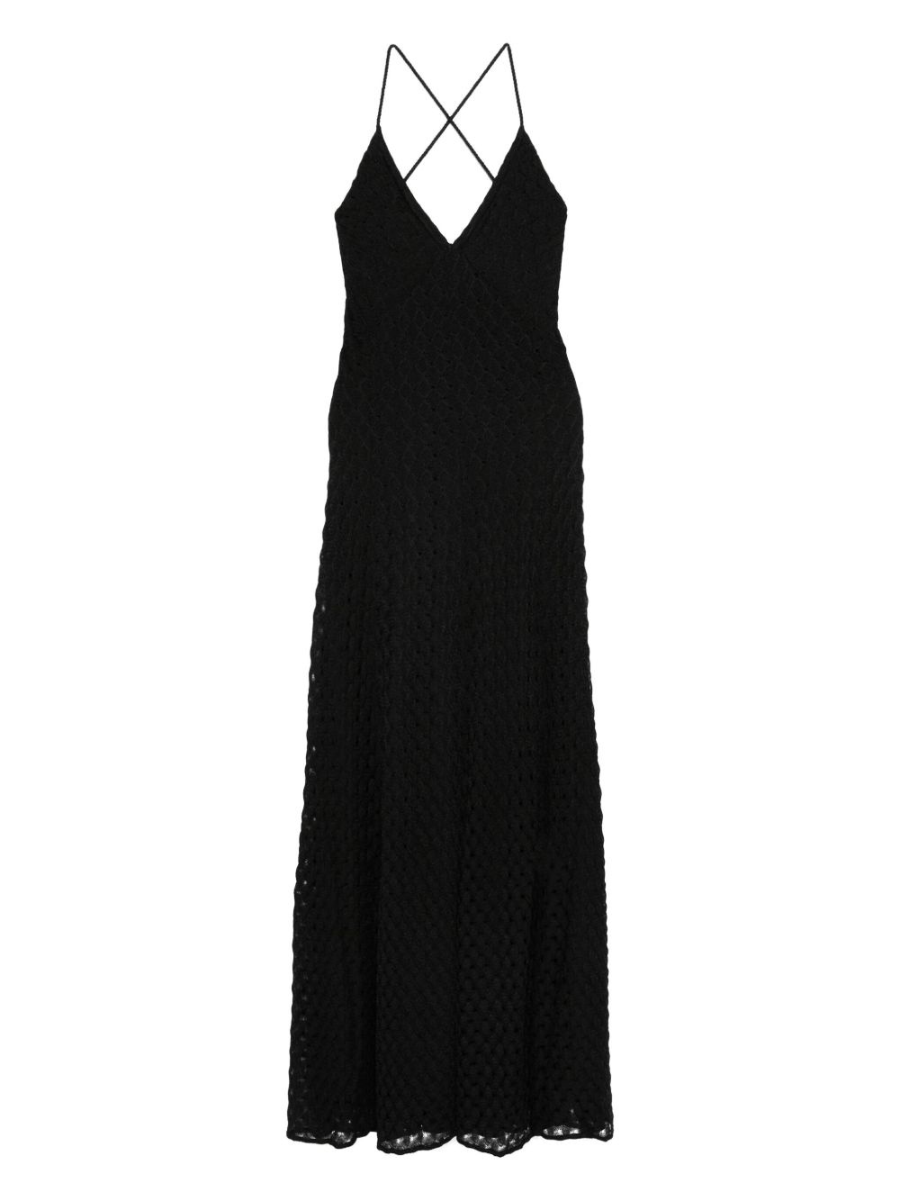 V-neck maxi dress Highlights - Black - Rear zip fastening - Rear criss-cross straps - Open back - Textured finish - The item you receive may differ slightly from the item photographed. this is due to the artisanal nature with which all missoni products are constructed. Made in Italy Composition Lining: Polyester 82%, Elastane 18% Outer: Viscose 100% SIZE & FIT Model measurements Height 5 ft 10 in(1.78 m) Bust/Chest 31.49 in(80 cm) Hips 37 in(94 cm) Waist 23.62 in(60 cm) FittingInformation Designed for a close fit at the chest and waist with a loose fit at the hip Made from a midweight stretch fabric, this piece offers elasticity and flexibility when worn Washing instructions Dry Clean Only
