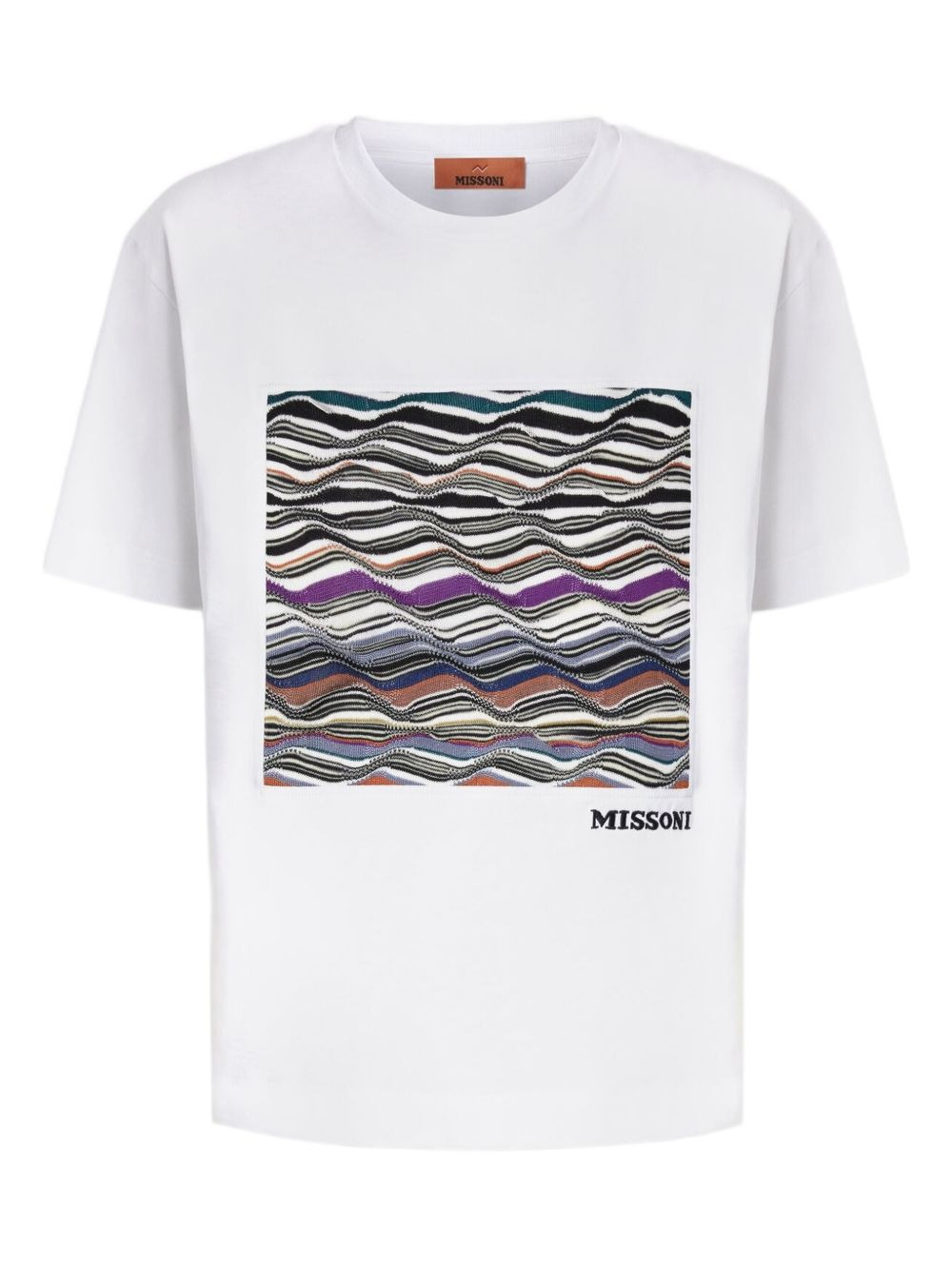 wave-pattern box-applique T-shirt Highlights - White - Short sleeves - Crew neck - Box applique - Wave pattern - Embroidered logo - The item you receive may differ slightly from the item photographed. this is due to the artisanal nature with which all missoni products are constructed. Made in Italy Composition Cotton 100% Washing instructions Read Manufacturer Guidelines