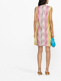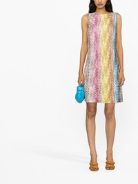 woven-zigzag shift dress The zigzag pattern, a signature of the Italian label Missoni, characterises the style of this minidress from SS23. The multicolour colourway gives this sleeveless silhouette an attention-grabbing appeal. Made in Italy Composition Lining: Polyester 100% Outer: Viscose 100% SIZE & FIT Model measurements Height 5 ft 10 in(1.78 m) Bust/Chest 31.49 in(80 cm) Hips 35.03 in(89 cm) Waist 23.62 in(60 cm) Measurement HIPS 37.79 in(96 cm) LENGTH 33.85 in(86 cm) WAIST 35.03 in(89 cm) FittingInformation This piece fits true to size. We recommend you get your regular size Designed for a close fit at the bust, waist and hips Made with a mid-weight fabric Washing instructions Dry Clean Only