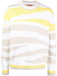 zebra-print crew-neck jumper Highlights - Light beige/light yellow - Cotton blend - Knitted construction - Intarsia knit - Crew neck - Ribbed cuffs and hem - Long sleeves - Straight hem - The item you receive may differ slightly from the item photographed. this is due to the artisanal nature with which all missoni products are constructed. Made in Italy Composition Cotton 68%, Polyamide 32% SIZE & FIT Model measurements Height 6 ft 1 in(1.85 m) Bust/Chest 38.58 in(98 cm) Hips 37 in(94 cm) Waist 30.31 in(77 cm) FittingInformation Designed for a relaxed fit, this piece allows for comfort and movement when worn Made with a midweight knit, this piece offers some stretch This piece fits true to size – take your usual size Washing instructions Dry Clean Only