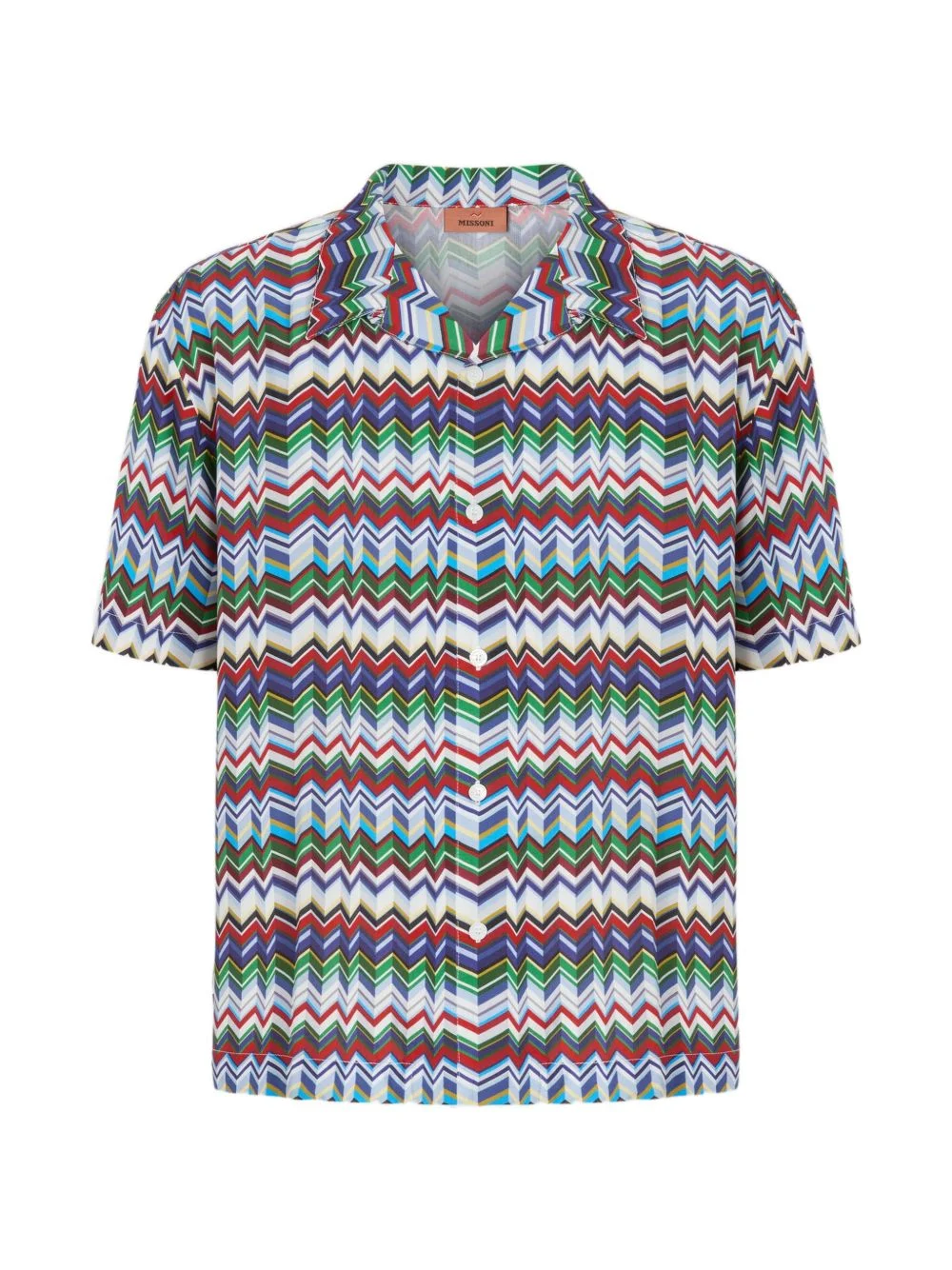 zig-zag button-down shirt Highlights - White, multicoloured - Zig-zag pattern - Button fastening - Short sleeves - The item you receive may differ slightly from the item photographed. this is due to the artisanal nature with which all missoni products are constructed. Imported Composition Rayon 100% Washing instructions Read Manufacturer Guidelines