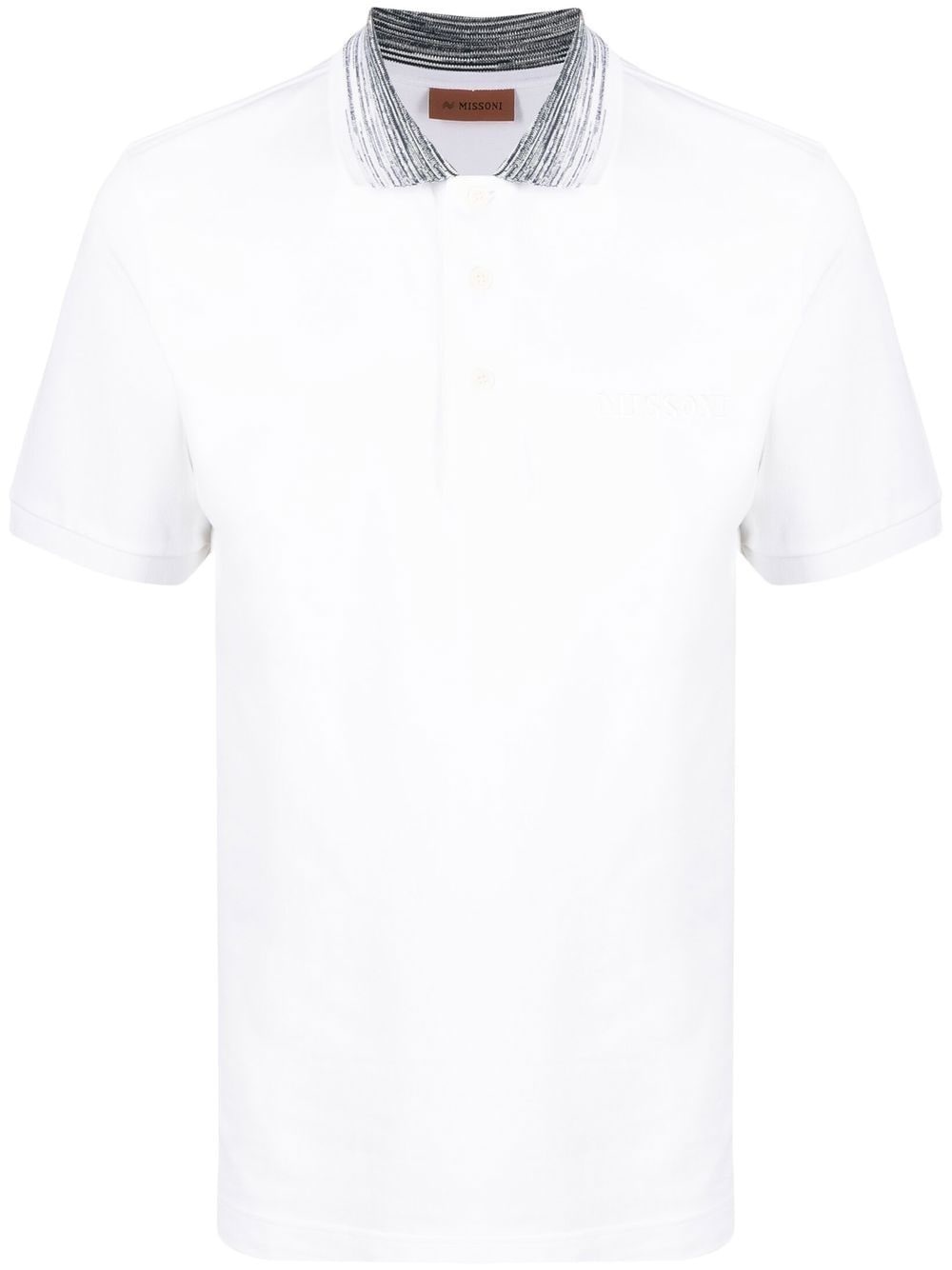 zig-zag collar polo shirt Highlights - White - Cotton - Polo collar - Signature zigzag woven design - Short front button fastening - Short sleeves - Straight hem - The item you receive may differ slightly from the item photographed. this is due to the artisanal nature with which all missoni products are constructed. Imported Composition Cotton 100% SIZE & FIT Model measurements Height 6 ft 2 in(1.87 m) Bust/Chest 36.41 in(92.5 cm) Hips 37 in(94 cm) Waist 29.52 in(75 cm) FittingInformation This piece fits true to size. We recommend you get your regular size Cut for a relaxed fit Made with a mid-weight fabric Measurement CHEST 39.17 in(99.5 cm) LENGTH 27.95 in(71 cm) Washing instructions Machine Wash