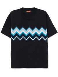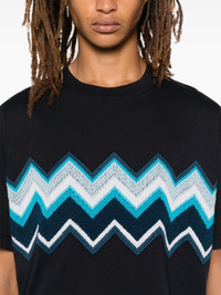 zig zag embroidered cotton T-shirt Highlights - Navy blue - Cotton - Jersey texture - Zig zag embroidery at the front - Ribbed crew neck - Short sleeves - Straight hem - The item you receive may differ slightly from the item photographed. this is due to the artisanal nature with which all missoni products are constructed. Made in Italy Composition Cotton 100%, Wool 50%, Acrylic 50% SIZE & FIT Model measurements Height 6 ft 2 in(1.88 m) Bust/Chest 35.43 in(90 cm) Hips 36.61 in(93 cm) Waist 27.95 in(71 cm) FittingInformation Designed for a regular fit allowing for a comfortably loose fit throughout the body Made from a midweight non-stretch fabric, this piece offers minimal elasticity when worn Washing instructions Machine Wash