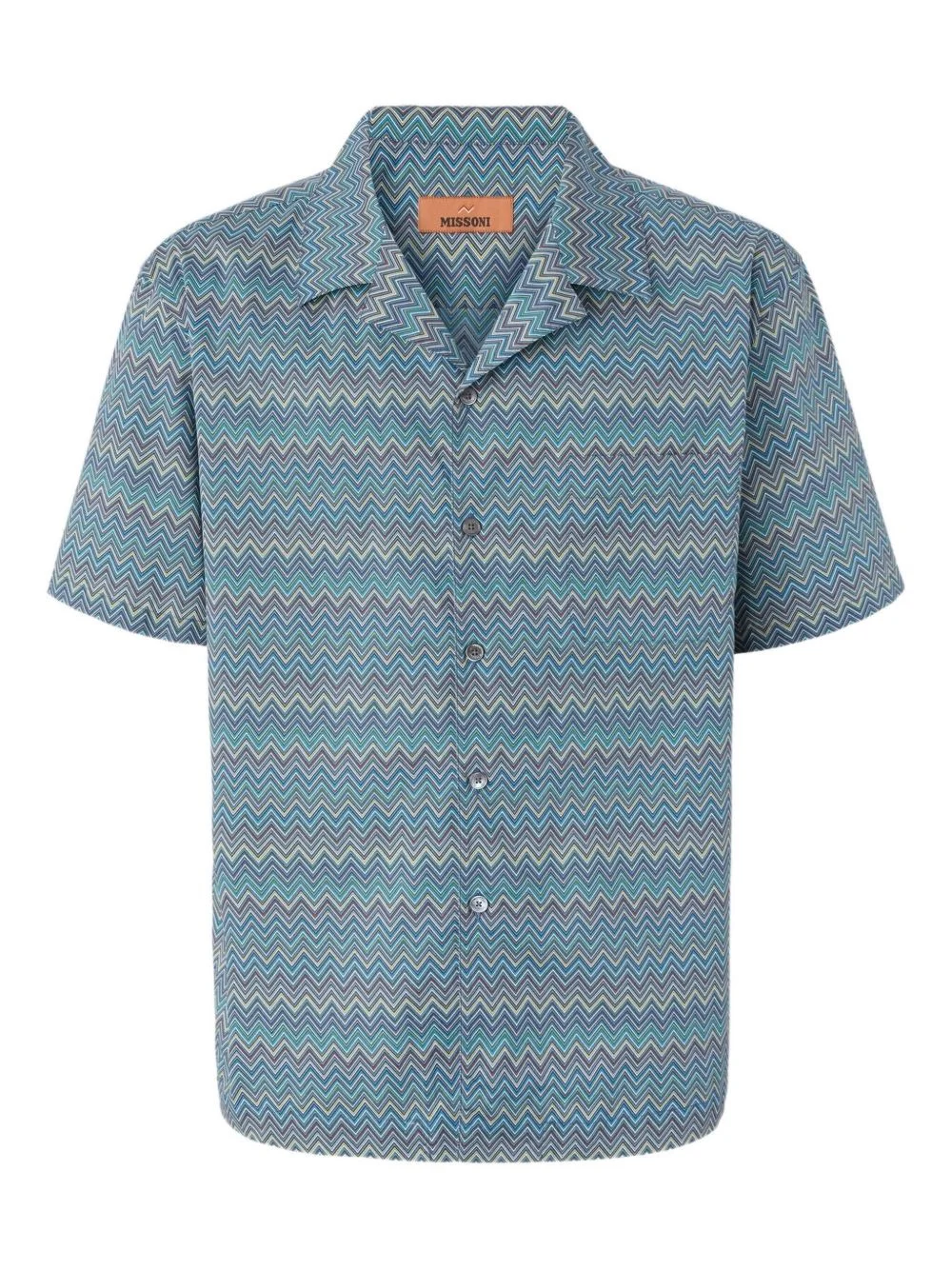 zig-zag short-sleeve shirt Highlights - Blue - Zig-zag pattern - Revere collar - Short sleeves - Button fastening - Straight hem - The item you receive may diff er slightly from the item photographed. this is due to the artisanal nature with which all missoni products are constructed. Imported Composition Cotton 100%