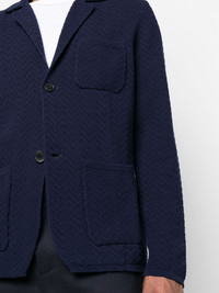 zig-zag weave single-breasted jacket Highlights - Navy blue - Cotton - Signature zigzag woven design - Ribbed detailing - Classic lapels - Front button fastening - Three front patch pockets - The item you receive may differ slightly from the item photographed. this is due to the artisanal nature with which all missoni products are constructed. Made in Italy Composition Cotton 100% SIZE & FIT Model measurements Height 6 ft 2 in(1.87 m) Bust/Chest 37 in(94 cm) Hips 33.85 in(86 cm) Waist 27.95 in(71 cm) FittingInformation Designed for a slim fit, offering a comfortable fit that sits just away from the body Made from a midweight non-stretch fabric, this piece offers minimal elasticity when worn This piece fits true to size – take your usual size Measurement SLEEVE LENGTH 25.19 in(64 cm) Washing instructions Dry Clean Only