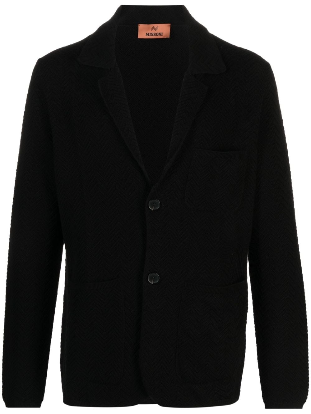 zig-zag weave single-breasted jacket Highlights - Black - Cotton - Signature zigzag woven design - Ribbed detailing - Classic lapels - Front button fastening - Three front patch pockets - The item you receive may differ slightly from the item photographed. this is due to the artisanal nature with which all missoni products are constructed. Made in Italy Composition Cotton 100% SIZE & FIT Model measurements Height 6 ft 2 in(1.89 m) Bust/Chest 37.79 in(96 cm) Hips 37 in(94 cm) Waist 29.92 in(76 cm) Measurement SLEEVE LENGTH 25.19 in(64 cm) FittingInformation Designed for a slim fit, offering a comfortable fit that sits just away from the body Made from a midweight fabric This piece fits true to size – take your usual size Washing instructions Dry Clean Only