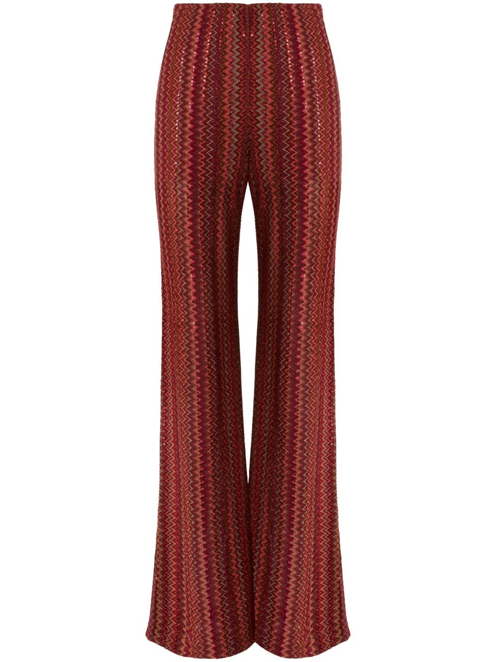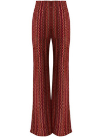 Zigzag flared trousers Highlights - Dark red - Elasticated waistband - High-waisted - Floor-length - The item you receive may differ slightly from the item photographed. this is due to the artisanal nature with which all missoni products are constructed. Made in Italy Composition Outer: Rayon 88%, Metallic Fibre 6%, Polyamide 6% Lining: Polyamide 77%, Spandex/Elastane 23%