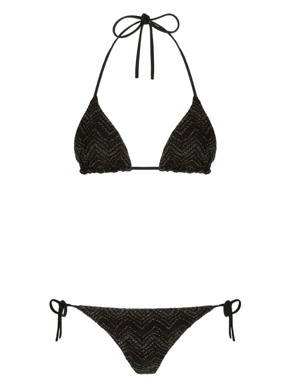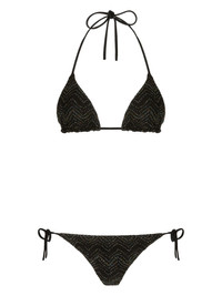 zigzag-knit bikini set Highlights - Black - Rear lace-up fastening - Side lace-up fastening - The item you receive may differ slightly from the item photographed. this is due to the artisanal nature with which all missoni products are constructed. - Be mindful to try on swimwear over your own garments. Made in Italy Composition Outer: Rayon 91%, Metallic Fibre 9% Lining: Polyamide 80%, Elastane 20%