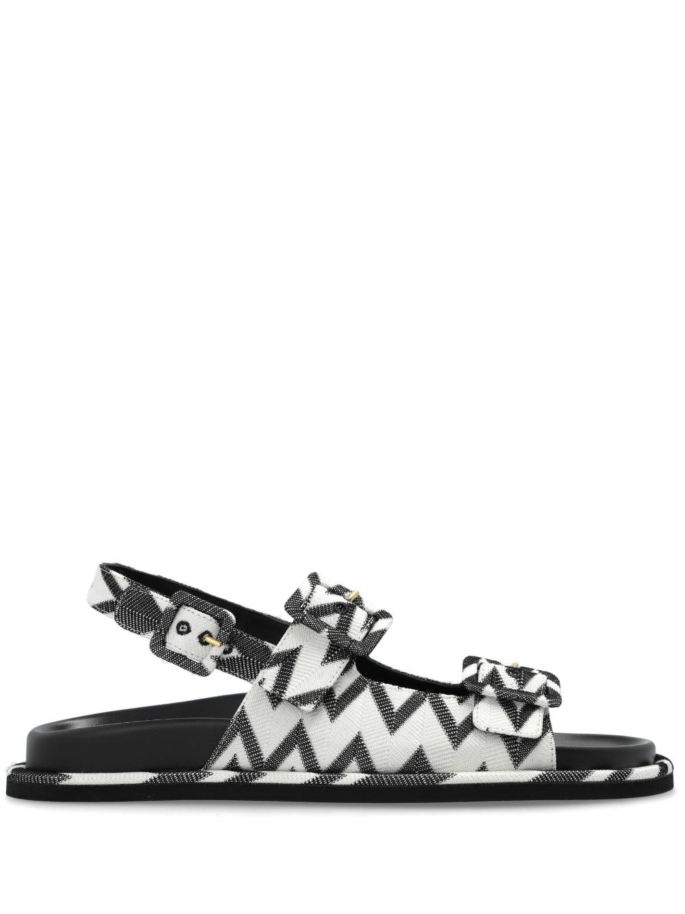 zigzag-knit buckled sandals Highlights - Black/white - Branded leather insole - Signature zigzag woven design - Round open toe - Double buckle fastening - Slip-on style - Moulded footbed - Flat rubber sole - The item you receive may differ slightly from the item photographed. this is due to the artisanal nature with which all missoni products are constructed. Made in Italy Composition Outer: Viscose 100% Lining: Leather 100% Sole: Rubber 100%