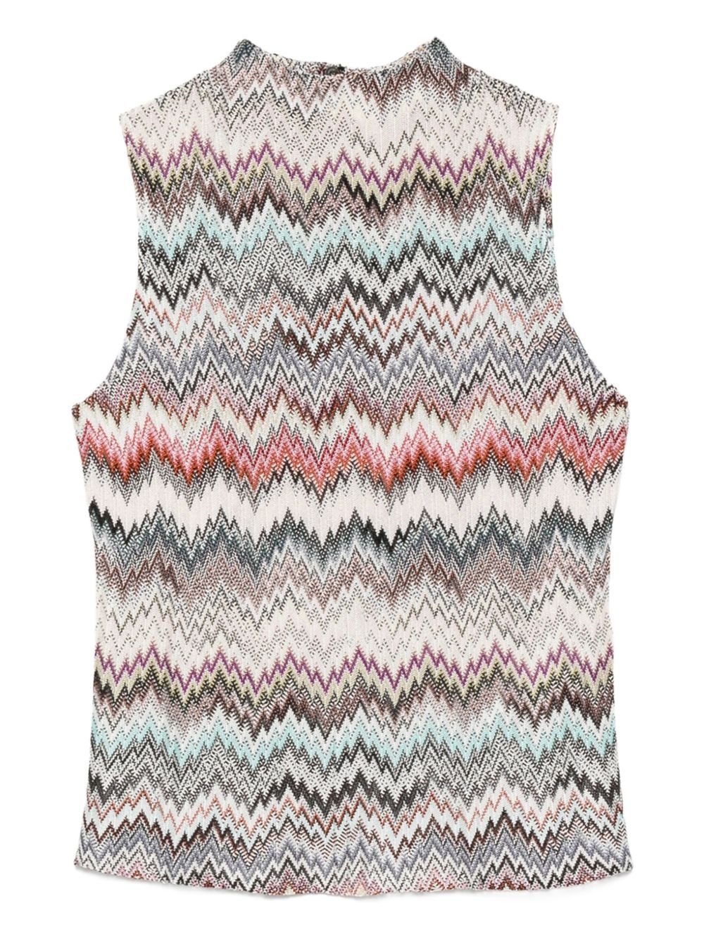 zigzag-knit tank top Highlights - Beige - Mock neck - Sleeveless - Straight hem - The item you receive may differ slightly from the item photographed. this is due to the artisanal nature with which all missoni products are constructed. Made in Italy Composition Viscose 100% SIZE & FIT Model measurements Height 5 ft 10 in(1.78 m) Bust/Chest 33.85 in(86 cm) Hips 36.61 in(93 cm) Waist 26.77 in(68 cm) Washing instructions Dry Clean Only