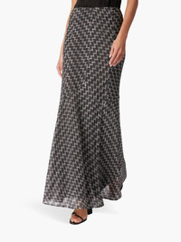 Zigzag lame flared maxi skirt Highlights - Black/silver - Stretch-design - Signature zigzag woven design - Lame effect - Metallic threading - Mid-rise - Panelled design - Layered design - Flared hem - Ankle-length - The item you receive may differ slightly from the item photographed. this is due to the artisanal nature with which all missoni products are constructed. Made in Italy Composition Outer: Rayon 64%, Metallic Fibre 25%, Polyamide 11% Lining: Polyester 100% Washing instructions Read Manufacturer Guidelines