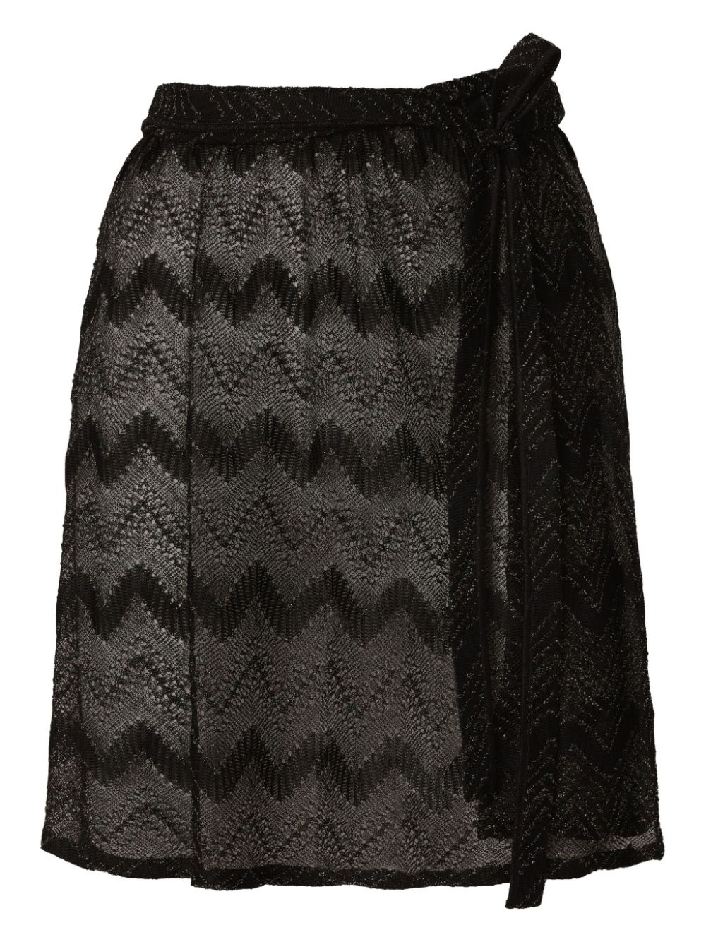 zigzag lame mini skirt Highlights - Black - Self-tie fastening - Side slit - Wrap design - The item you receive may differ slightly from the item photographed. this is due to the artisanal nature with which all missoni products are constructed. Made in Italy Composition Rayon 91%, Metallic Fibre 9%