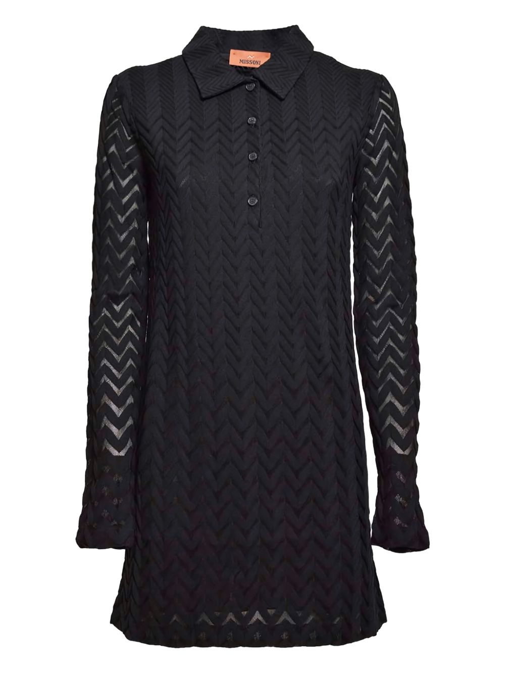 Zigzag mini dress Highlights - Black - Front button placket - Polo collar - Long sleeves - The item you receive may differ slightly from the item photographed. this is due to the artisanal nature with which all missoni products are constructed. Made in Italy Composition Polyamide 77%, Cotton 74%, Rayon 26%, Elastane 23%
