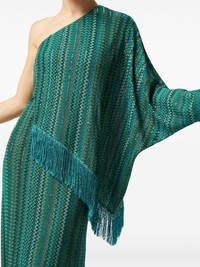 zigzag one-shoulder dress Highlights - Dark green - Concealed side zip fastening - Fringe detailing - One-shoulder - Single long sleeve - The item you receive may differ slightly from the item photographed. this is due to the artisanal nature with which all missoni products are constructed. Made in Italy Composition Outer: Rayon 88%, Polyamide 6%, Metallic Fibre 6% Lining: Polyamide 77%, Spandex/Elastane 23%