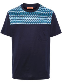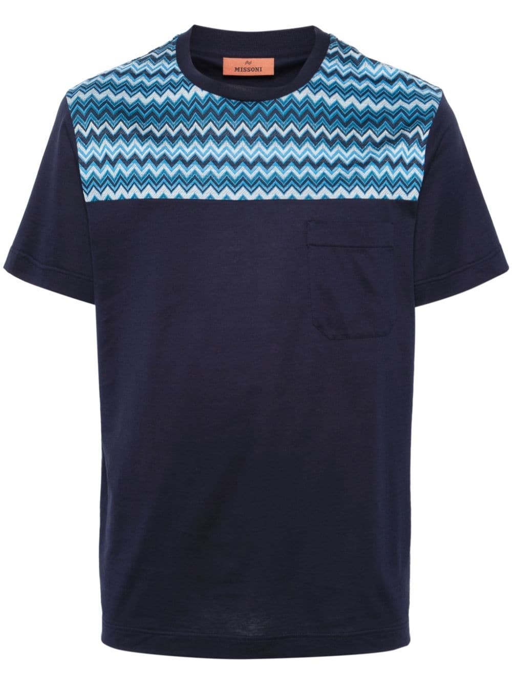 zigzag-panel cotton T-shirt Highlights - Navy blue - Cotton - Jersey texture - Signature zigzag woven panel - Crew neck - Drop shoulder - Short sleeves - Chest patch pocket - Straight hem - The item you receive may differ slightly from the item photographed. this is due to the artisanal nature with which all missoni products are constructed. Imported Composition Cotton 100% SIZE & FIT Model measurements Height 6 ft 2 in(1.87 m) Bust/Chest 37.79 in(96 cm) Hips 37.79 in(96 cm) Waist 30.31 in(77 cm) FittingInformation Designed for a relaxed fit, this piece allows for comfort and movement when worn Made from a midweight non-stretch fabric, this piece offers minimal elasticity when worn This piece fits true to size – take your usual size Washing instructions Machine Wash