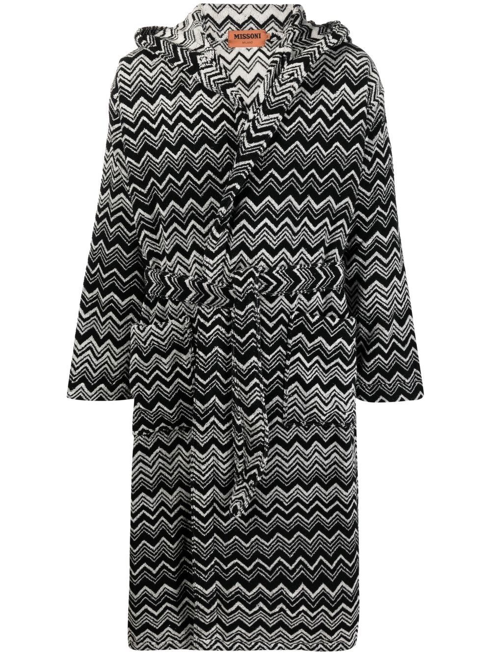 zigzag-pattern bath robe black/white cotton zigzag print terry-cloth effect tied waist long sleeves two side patch pockets The item you receive may differ slightly from the item photographed. This is due to the artisanal nature in which all Missoni products are constructed. Imported Composition Cotton 100% Washing instructions Machine Wash