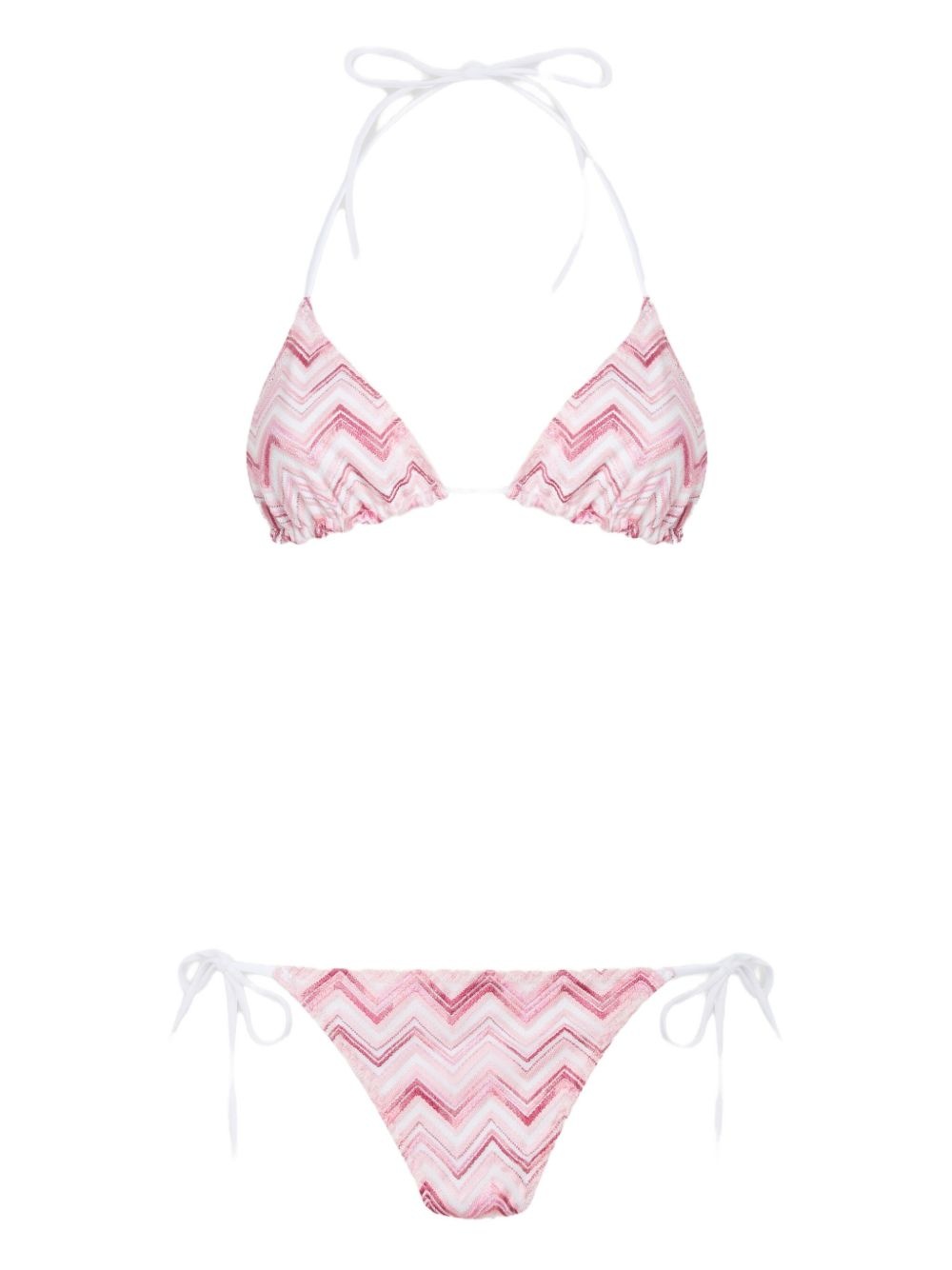 zigzag-pattern bikini Highlights - Light pink - Halterneck tie fastening - Rear tie fastening - Side-tie bottoms - Be mindful to try on swimwear over your own garments. - The item you receive may differ slightly from the item photographed. this is due to the artisanal nature with which all missoni products are constructed. Made in Italy Composition Outer: Rayon 65%, Polyamide 29%, Spandex/Elastane 6% Lining: Polyamide 80%, Spandex/Elastane 20% Washing instructions Read Manufacturer Guidelines
