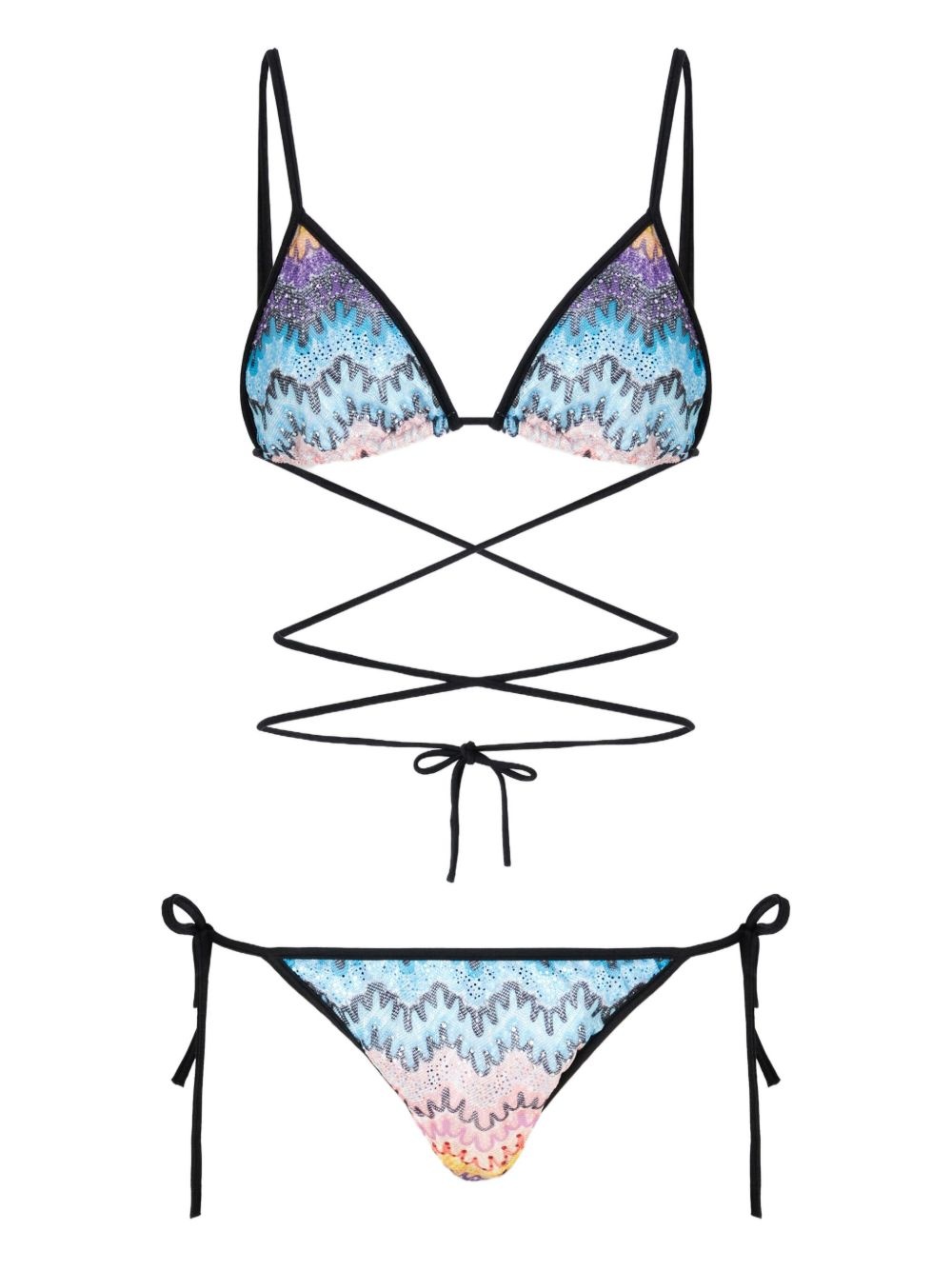 zigzag-pattern bikini Highlights - Multicolour - Rear tie fastening - Side-tie bottoms - Be mindful to try on swimwear over your own garments. - The item you receive may differ slightly from the item photographed. this is due to the artisanal nature with which all missoni products are constructed. Made in Italy Composition Fabric 100%