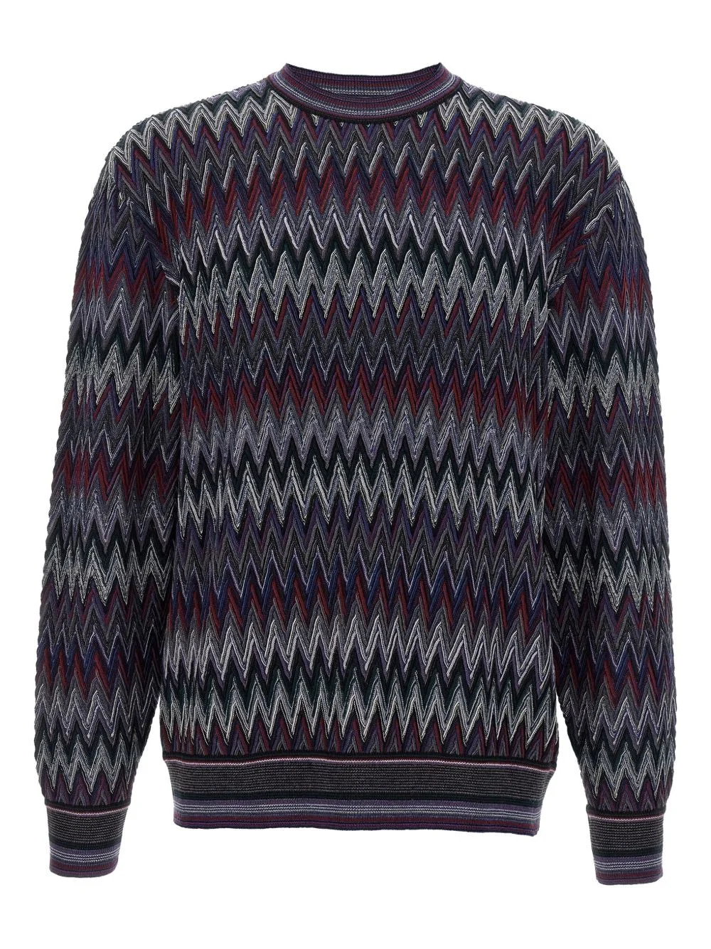 zigzag-pattern crew-neck sweater Highlights - Blue - Zigzag pattern - Crew neck - Long cuffed sleeves - Wool - Ribbed hem - The item you receive may differ slightly from the item photographed. this is due to the artisanal nature with which all missoni products are constructed. Made in Italy Composition Wool 100% Washing instructions Read Manufacturer Guidelines