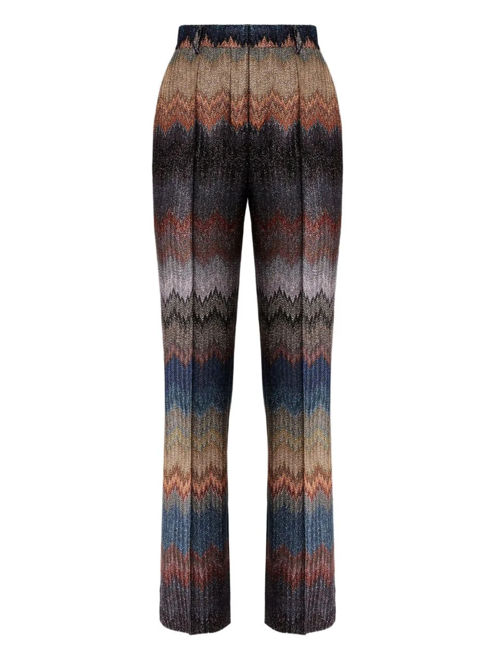 zigzag-pattern glitter-effect trousers Highlights - Multicolour - Signature zigzag pattern - Glitter effect - Pleated front - Belt loops - The item you receive may differ slightly from the item photographed. this is due to the artisanal nature with which all missoni products are constructed. Made in Italy Composition Fabric 100% Washing instructions Read Manufacturer Guidelines