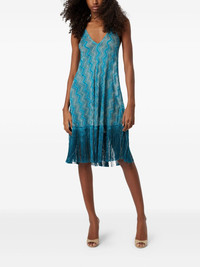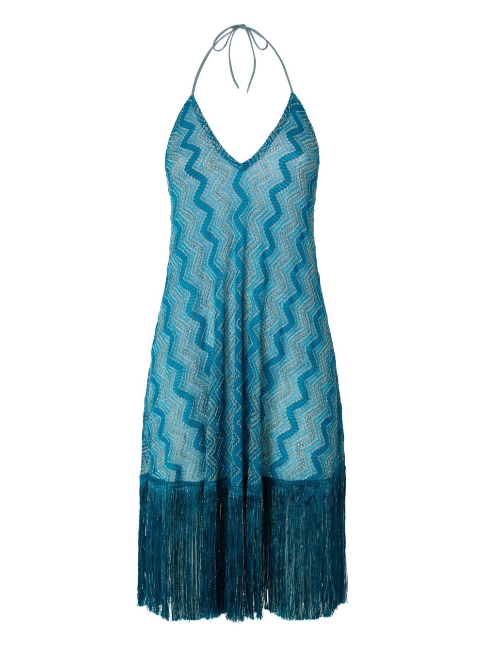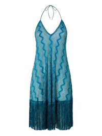zigzag-pattern midi dress Highlights - Aqua blue - Halterneck tie fastening - Open back - Fringe detailing - Sleeveless - The item you receive may differ slightly from the item photographed. this is due to the artisanal nature with which all missoni products are constructed. Made in Italy Composition Fabric 100% Washing instructions Read Manufacturer Guidelines