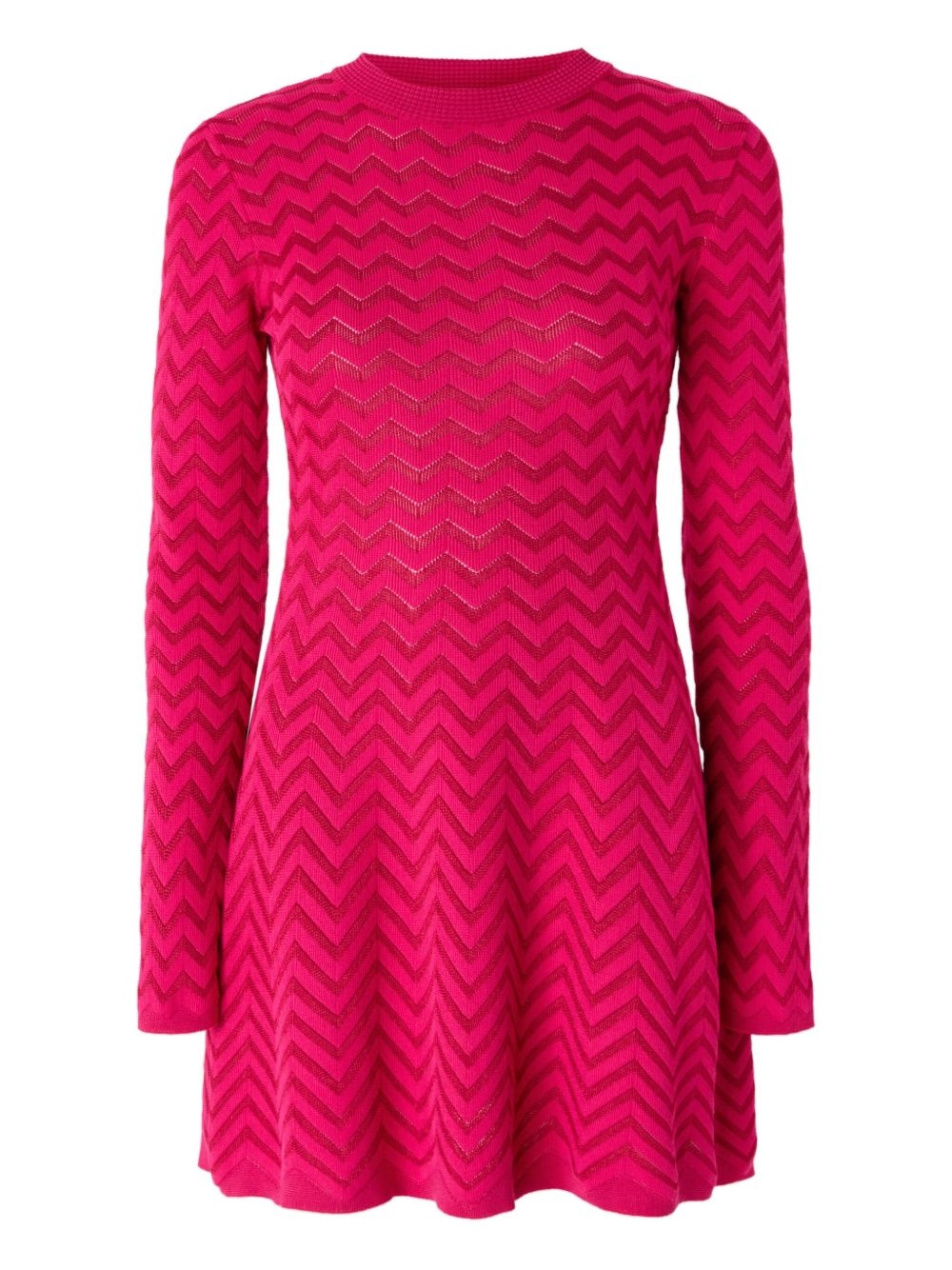 zigzag-pattern mini dress Highlights - Hot pink - Knitted construction - Round neck - Long sleeves - Flared hem - The item you receive may differ slightly from the item photographed. this is due to the artisanal nature with which all missoni products are constructed. Made in Italy Composition Cotton 61%, Rayon 37%, Spandex/Elastane 1%, Polyamide 1%