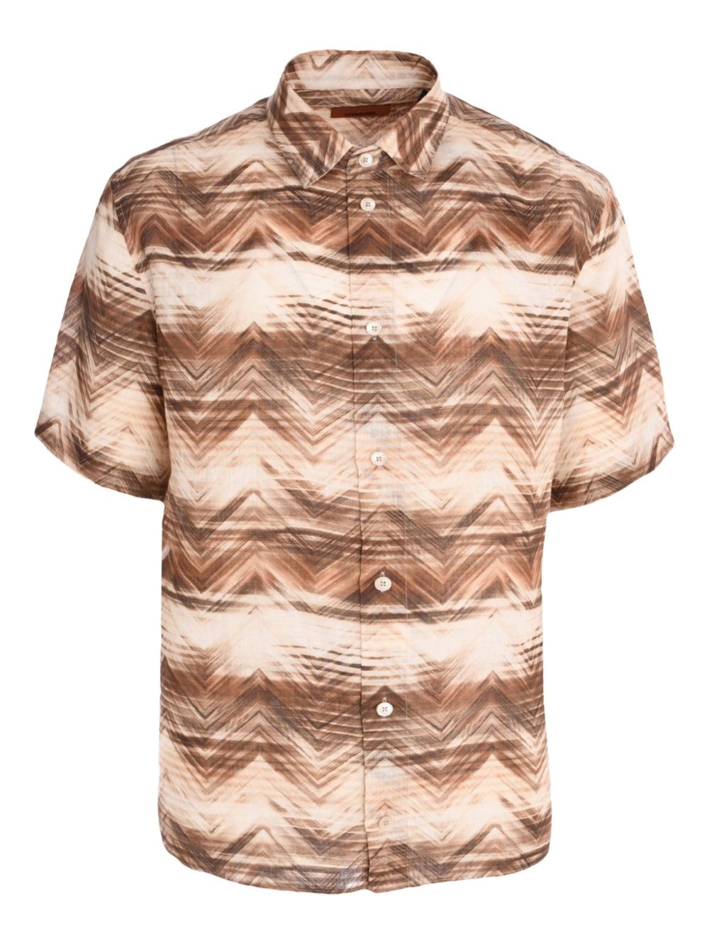 zigzag-pattern short-sleeve shirt Highlights - Light beige - Zigzag pattern - Short sleeves - Button fastening - Point collar - Flax material - The item you receive may differ slightly from the item photographed. this is due to the artisanal nature with which all missoni products are constructed. Imported Composition Flax 100% Washing instructions Read Manufacturer Guidelines