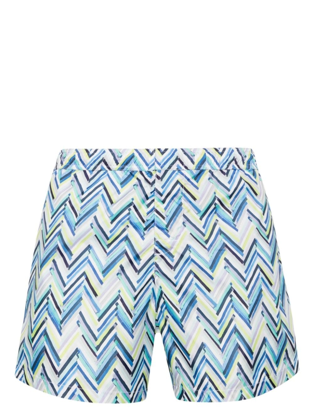 zigzag-pattern swim shorts Highlights - White/multicolour - Zigzag pattern - Metal eyelet detailing - Mid-rise - Elasticated waistband with internal drawstring - Concealed front fastening - Two side slit pockets - Rear flap pocket - Straight leg - Thigh-length - Mesh lining - The item you receive may differ slightly from the item photographed. this is due to the artisanal nature with which all missoni products are constructed. - Be mindful to try on swimwear over your own garments. Imported Composition Lining: Polyester 100% Outer: Polyester 100% SIZE & FIT Measurement LEG OPENING 24.8 in(63 cm) FRONT RISE 12.2 in(31 cm) WAIST 33.46 in(85 cm) INSIDE LEG 4.72 in(12 cm) Washing instructions Machine Wash