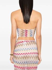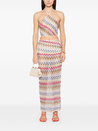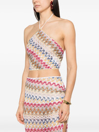 zigzag-pattern tank top Highlights - White - Halterneck tie fastening - Sleeveless - Elasticated underband - The item you receive may differ slightly from the item photographed. this is due to the artisanal nature with which all missoni products are constructed. Made in Italy Composition Viscose 95%, Metallised Fibres 5% SIZE & FIT Model measurements Height 5 ft 11 in(1.8 m) Bust/Chest 33.07 in(84 cm) Hips 37.4 in(95 cm) Waist 25.19 in(64 cm) FittingInformation Designed for a close fit throughout The tie fastening gives an adaptable and personalised fit Made with a fine knit, this piece offers some stretch