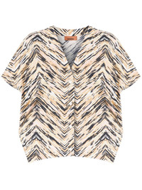 Animal print zig zag cotton poplin blouse