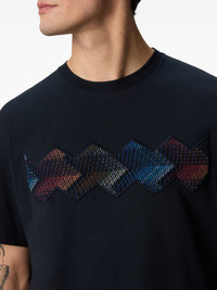 Cotton crewneck T-shirt with gradient zig zag insert