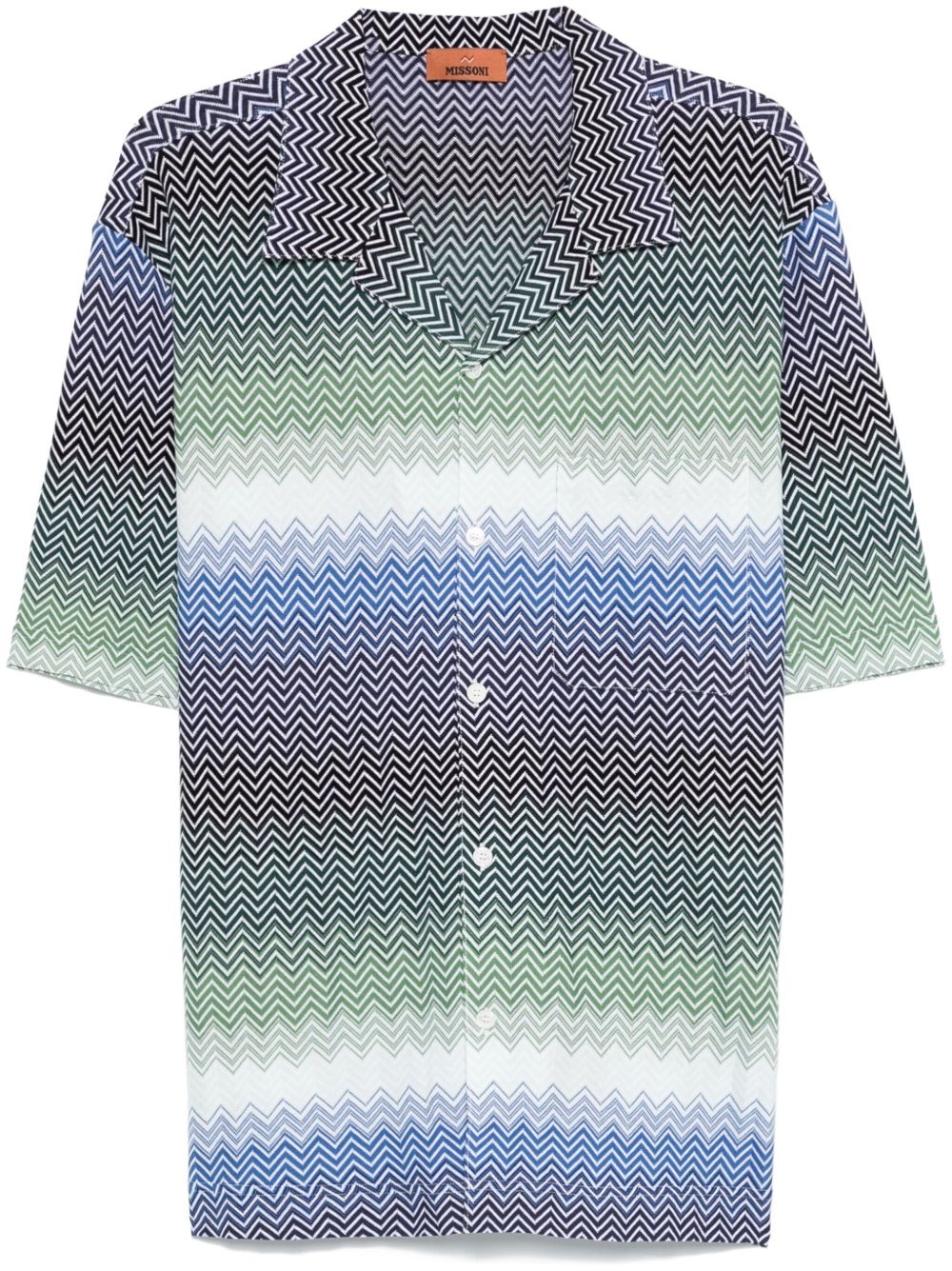 zigzag shirt Highlights - Navy blue - Front button fastening - Chest patch pocket - Short sleeves - The item you receive may differ slightly from the item photographed. this is due to the artisanal nature with which all missoni products are constructed. Made in Italy Composition Cotton 100% Washing instructions Machine Wash