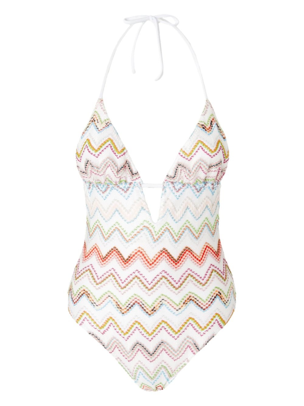 zigzag swimsuit Highlights - White - Rear lace-up fastening - Plunging v-neck - Be mindful to try on swimwear over your own garments. - The item you receive may differ slightly from the item photographed. this is due to the artisanal nature with which all missoni products are constructed. Made in Italy Composition Fabric 100% Washing instructions Read Manufacturer Guidelines