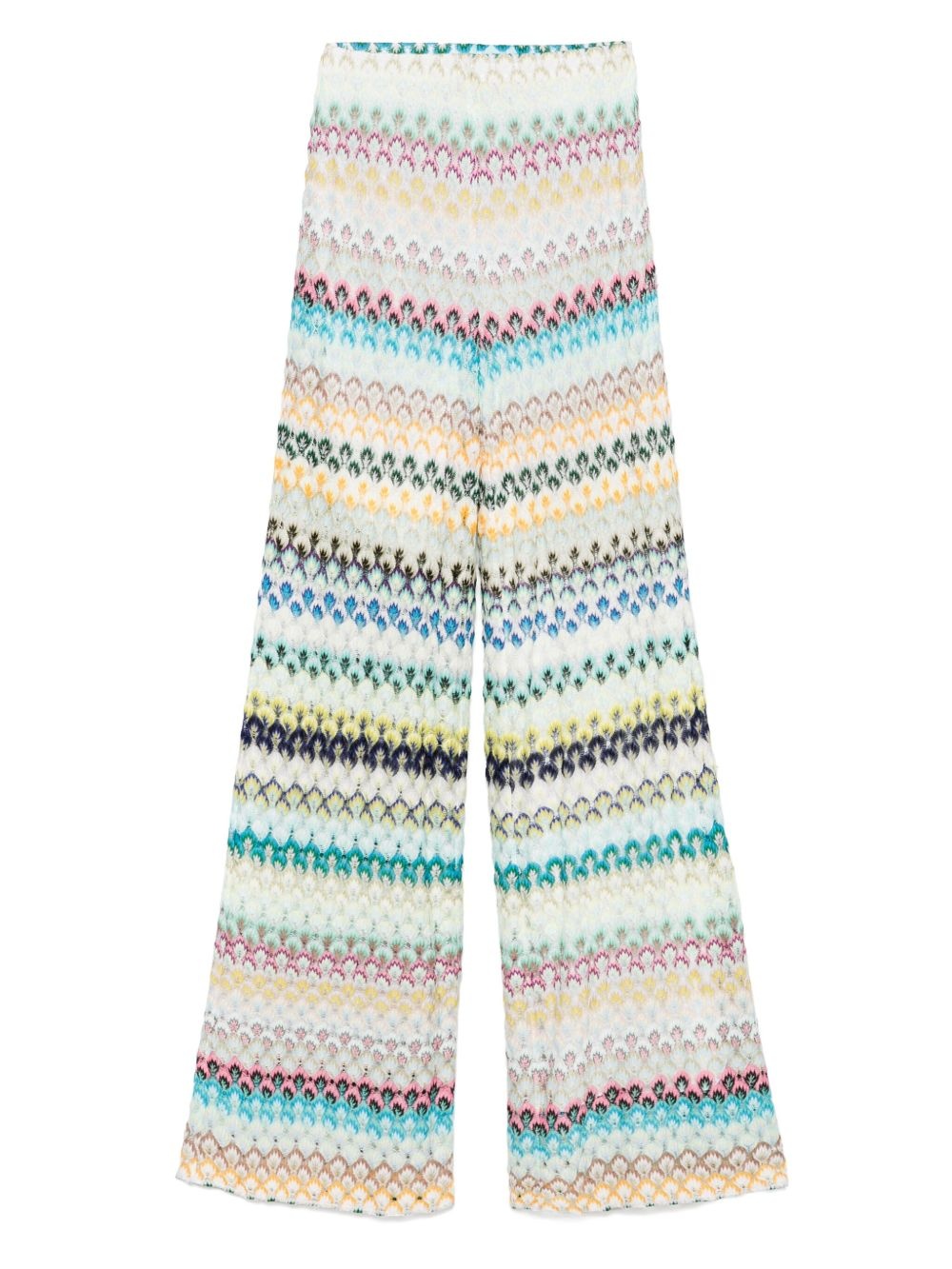 zigzag trousers Highlights - White - Elasticated waistband - Unlined - The item you receive may differ slightly from the item photographed. this is due to the artisanal nature with which all missoni products are constructed. Made in Italy Composition Lining: Polyamide 77%, Elastane 23% Outer: Viscose 100% SIZE & FIT Model measurements Height 5 ft 10 in(1.78 m) Bust/Chest 33.46 in(85 cm) Hips 36.22 in(92 cm) Waist 23.22 in(59 cm) FittingInformation Designed with a flared hem, these trousers allow for a close fit at the waist with a slim fit over the leg and widening towards the hem The elasticated waist allows for a comfortable fit Made from a midweight fabric