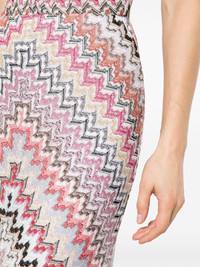 zigzag-woven long-length skirt Highlights - Pink/multicolour - Knitted construction - Metallic threading - Signature zigzag woven design - Elasticated waistband - Flared design - Straight hem - Full lining - The item you receive may differ slightly from the item photographed. this is due to the artisanal nature with which all missoni products are constructed. Made in Italy Composition Outer: Viscose 84%, Metallic Fibre 16% Lining: Polyester 82%, Elastane 18% SIZE & FIT Model measurements Height 5 ft 11 in(1.8 m) Bust/Chest 33.07 in(84 cm) Hips 37.4 in(95 cm) Waist 25.19 in(64 cm) Measurement HIPS 40.94 in(104 cm) LENGTH 39.76 in(101 cm) WAIST 29.92 in(76 cm) FittingInformation This maxi-length skirt is intended to be worn high on the waist The elasticated waist allows for a comfortable fit Made from a midweight stretch fabric, this piece offers elasticity and flexibility when worn This piece fits true to size – take your usual size Washing instructions Dry Clean Only