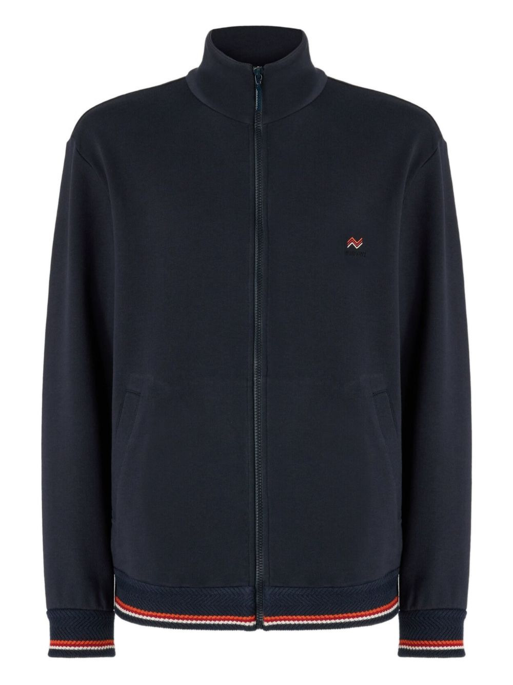 zip-up logo-embroidered sweater Highlights - Navy blue - Zip fastening - Ribbed hem - Ribbed cuffs - Small logo embroidery - High neck - The item you receive may diff er slightly from the item photographed. this is due to the artisanal nature with which all missoni products are constructed. Imported Composition Cotton 100% Washing instructions Read Manufacturer Guidelines