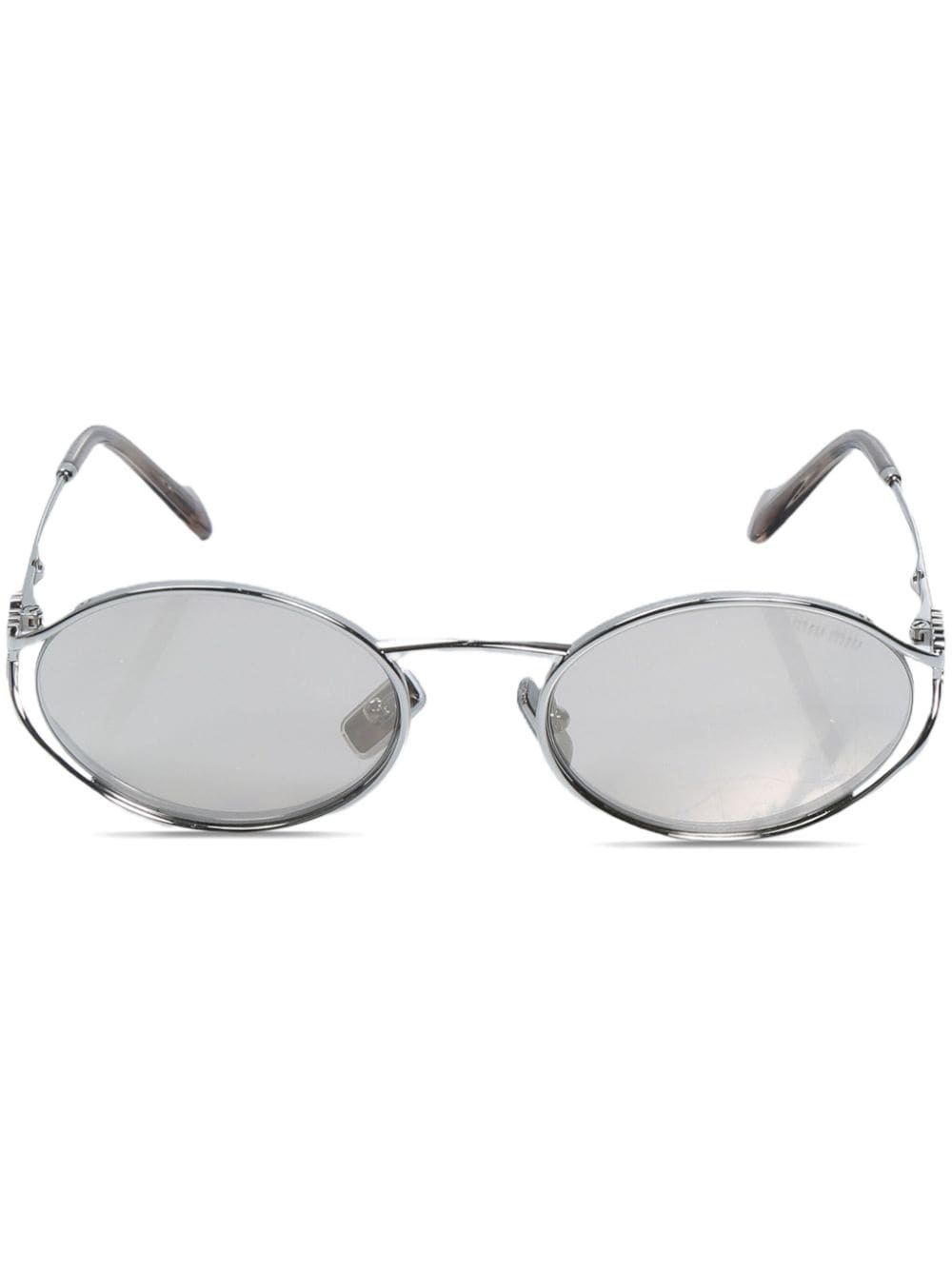 0MU 52YS oval-frame sunglasses Highlights - Silver-tone - Metal - Oval frame - Tinted lenses - Uv-protective lenses - Logo plaque at the arm - Nose pads - Straight arms - Curved tips - These glasses come with a protective case. Composition Metal 100%