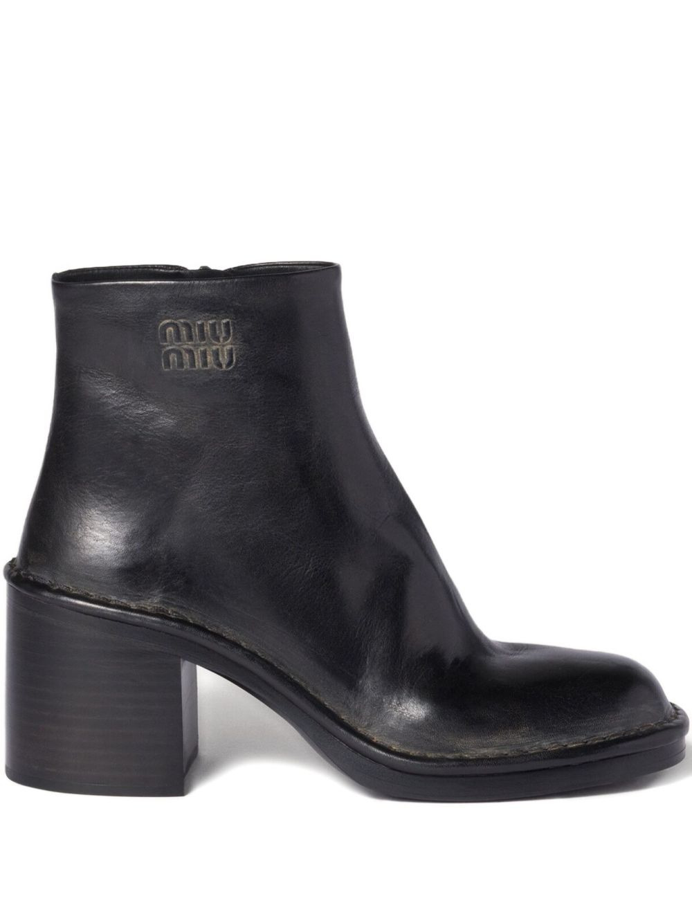 70mm leather ankle boots Highlights - Black - Side zip closure - Logo detail Composition Lining: Leather 100% Sole: Rubber 100%, Leather 100% Outer: Calf Leather 100% SIZE & FIT Measurement HEEL 2.75 in(7 cm)