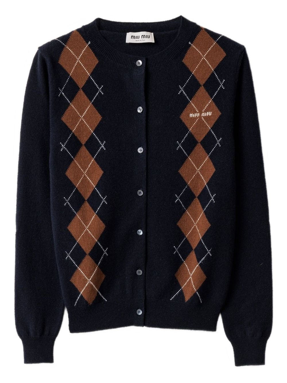 argyle intarsia-knit cardigan Highlights - Navy blue - Argyle intarsia knit - Cashmere - Front button closure Composition Cashmere 100% Washing instructions Read Manufacturer Guidelines