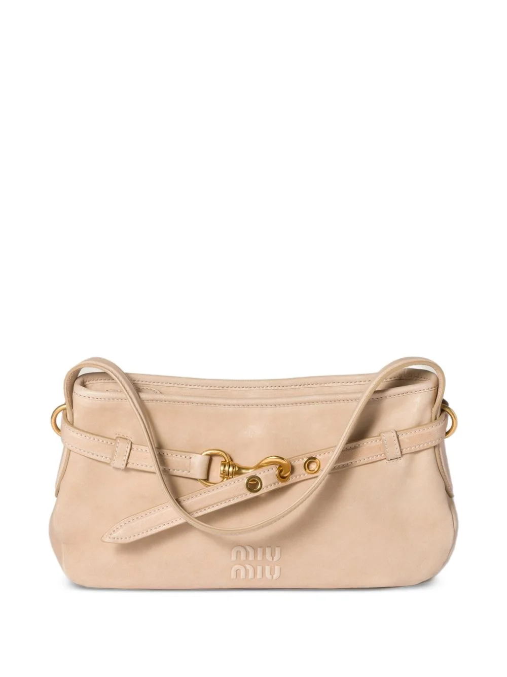 Aventure leather shoulder bag Highlights - Beige - Antiqued gold-tone hardware - Top zip closure - Embossed logo Composition Outer: Lamb Skin 100% SIZE & FIT Measurement DEPTH 1.96 in(5 cm) HEIGHT 7.48 in(19 cm) WIDTH 12.99 in(33 cm)