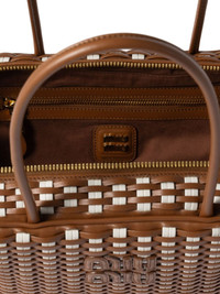 Bea woven-effect tote bag Highlights - Brown - Open weave design - Two rolled top handles - Zippered main compartment - Internal zip pocket - Logo detail Composition Outer: Calf Leather 100% SIZE & FIT Measurement DEPTH 3.34 in(8.5 cm) HEIGHT 6.69 in(17 cm) WIDTH 11.81 in(30 cm)