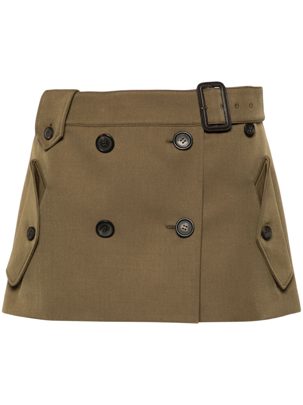 belted virgin wool miniskirt Highlights - Brown - Virgin wool - Gabardine weave - Embroidered logo to the rear - Faux pocket detail - Mid-rise - Belted waist - Front button fastening - Belt loops - Straight hem - Thigh-length - Full lining Composition Lining: Viscose 100% Outer: Virgin Wool 100% SIZE & FIT Model measurements Height 5 ft 10 in(1.78 m) Bust/Chest 31.49 in(80 cm) Hips 35.03 in(89 cm) Waist 23.62 in(60 cm) FittingInformation This mini-length skirt is intended to be worn low on the hips The belt offers adjustability for fitted preferences Made from a midweight non-stretch fabric This piece fits true to size – take your usual size Washing instructions Dry Clean Only