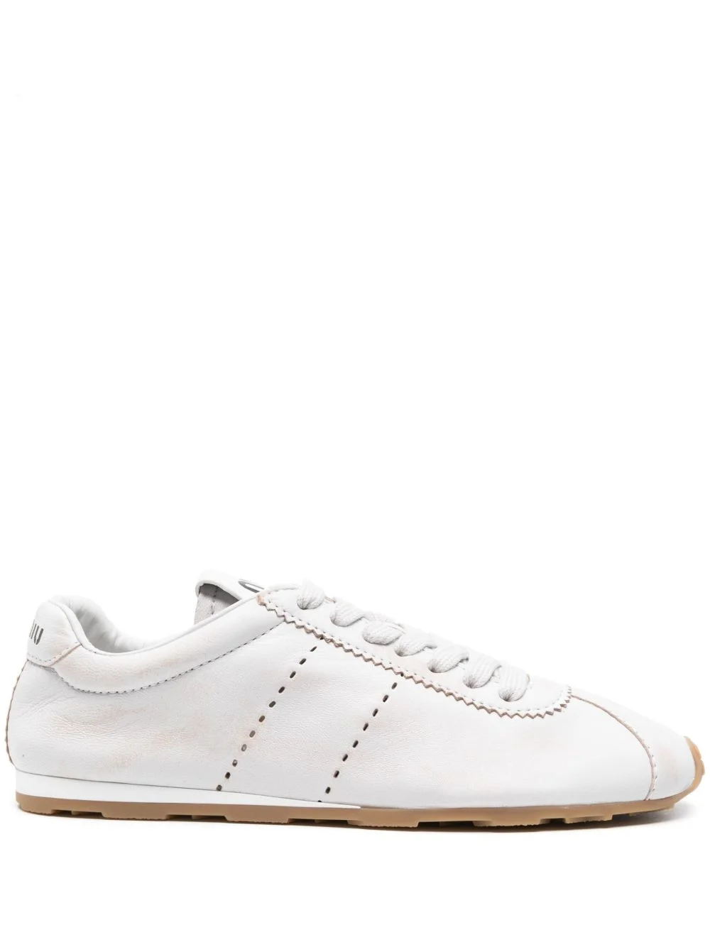 bleached leather sneakers Highlights - White - Calf leather - Bleached effect - Perforated detailing - Logo patch at the tongue - Branded heel counter - Front lace-up fastening - Round toe - Branded leather insole - Flat rubber sole Composition Outer: Calf Leather 100% Lining: Calf Leather 100% Sole: Rubber 100% SIZE & FIT Measurement HEEL 0.78 in(2 cm) Sole height 0.39 in(1 cm)