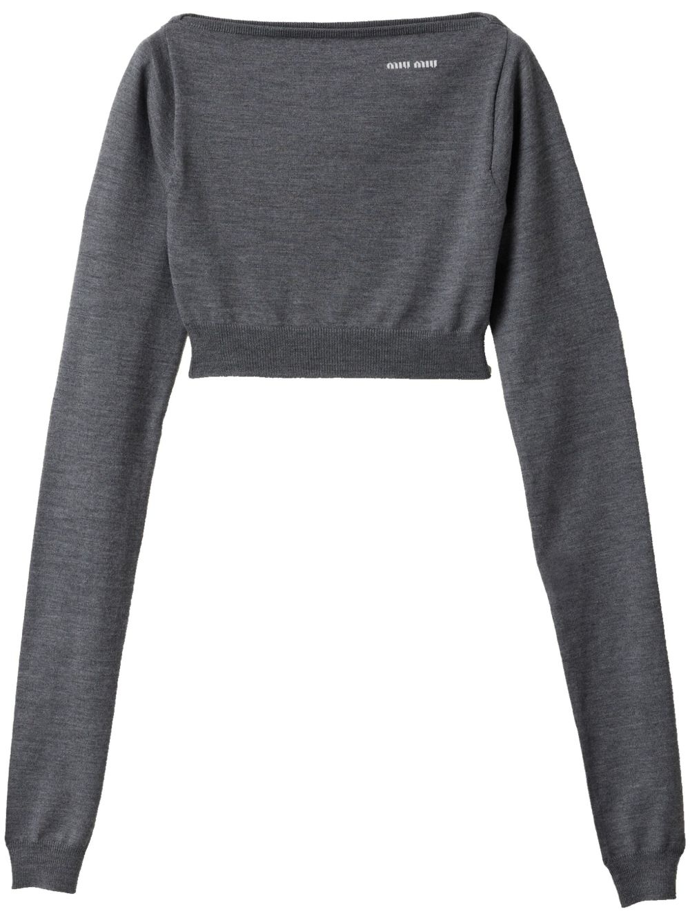 boat-neck top Highlights - Anthracite grey - Ribbed cuffs and hem - Intarsia-knit logo - Long sleeves Composition Virgin Wool 100%