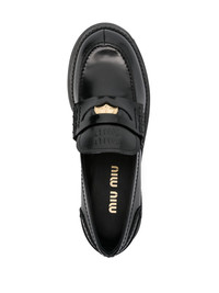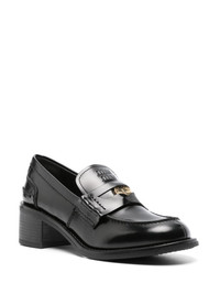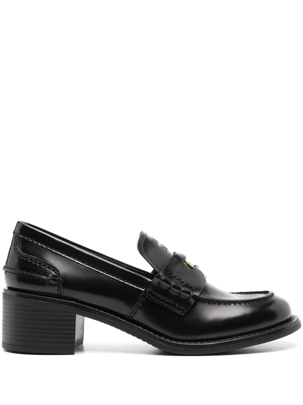 brushed leather penny loafers Highlights - Black - Calf leather - Brushed effect - Logo-embossed tongue - Coin detailing - Penny slot - Apron toe - Branded leather insole - Rubber sole - Stacked heel Composition Leather 100% SIZE & FIT Measurement HEEL 1.96 in(5 cm)
